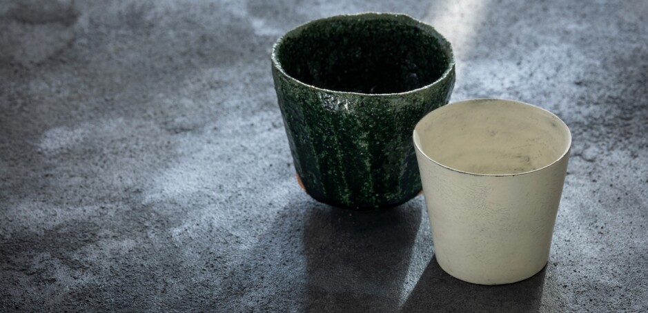 本展では 漆喰のような質感の粉引(白)のうつわ、緑釉や黒の茶碗などをご紹介いたします。
